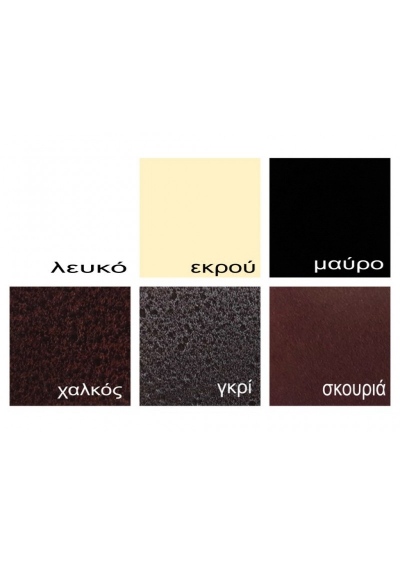 Διατίθεται σε 6 χρώματα: ΛΕΥΚΟ, ΕΚΡΟΥ, ΜΑΥΡΟ, ΧΑΛΚΟΣ, ΓΚΡΙ, ΣΚΟΥΡΙΑ.